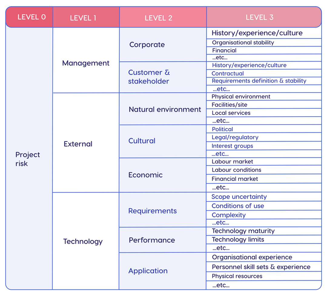 Here is an example of a risk breakdown structure [2].