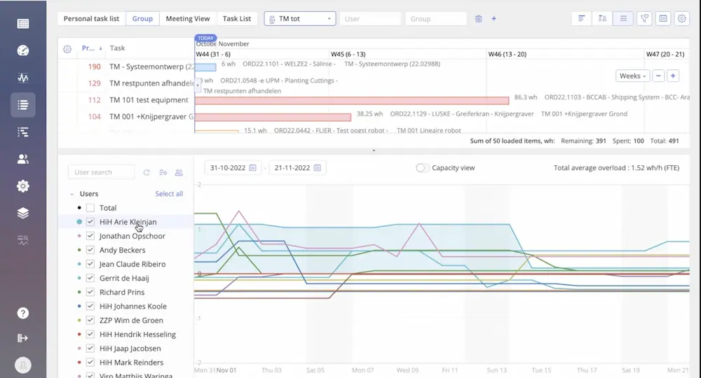 With the Load Analysis feature, you can get information about the tasks and projects they belong to, which are overloading your resources or resource groups. You can further use this data to balance workload by moving milestones or reassigning the tasks to other employees or groups. You can choose one or several groups and check their workload on the Future load graph. Then just select the period on the graph where you can see overload of the chosen group and ask Epicflow to perform a load analysis.
