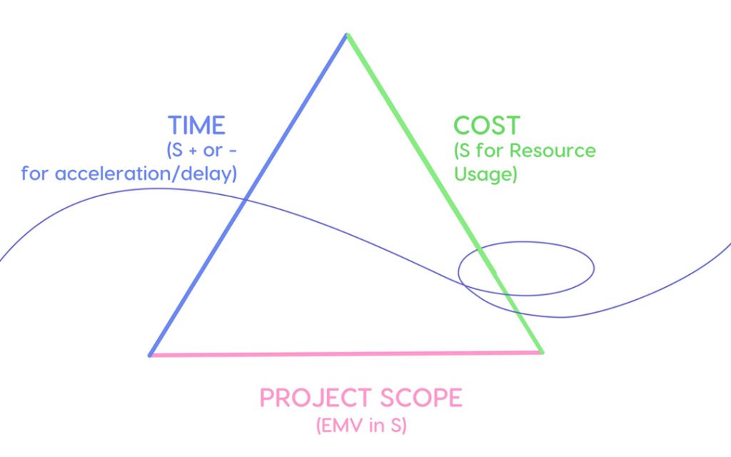 And so we have quantified all three sides in the same unit: euros. SCOPE is EMV euros, COST is resource usage euros, and TIME is the acceleration premium or delay cost euros through their impact on the EMV of the scope. Thus project profit is really: