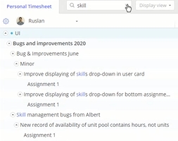 From now on, in Personal Timesheet, when typing a word to search for a certain task, the coincidences are highlighted with a blue color. It makes your searching efforts more simplified and saves your time.