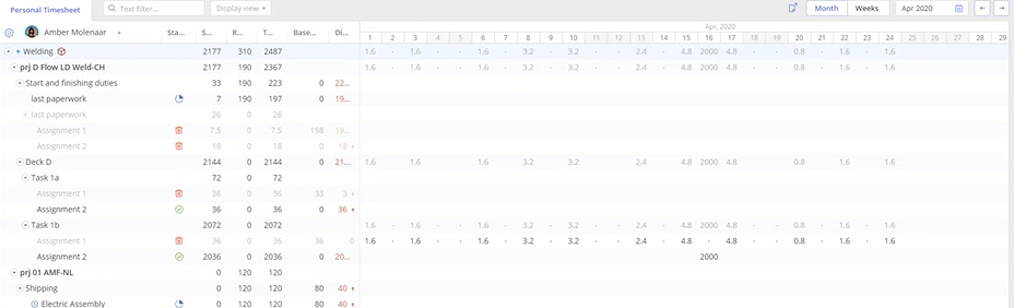 Another small improvement has appeared in Personal Timesheet. Instead of zeros in the corresponding cells in the user’s time table, you can see dots. They mean that the resource isn’t working on their tasks during these hours/days for some reasons despite these tasks are in progress. It’s more convenient to analyze task execution and the working hours when only the active time of employees is shown in the table and nothing more distracts you.