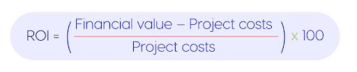 ROI shows the value generated by projects implemented by a project management office. ROI shows the difference between the costs invested in projects and the value gained upon their completion. It’s calculated with the following formula: